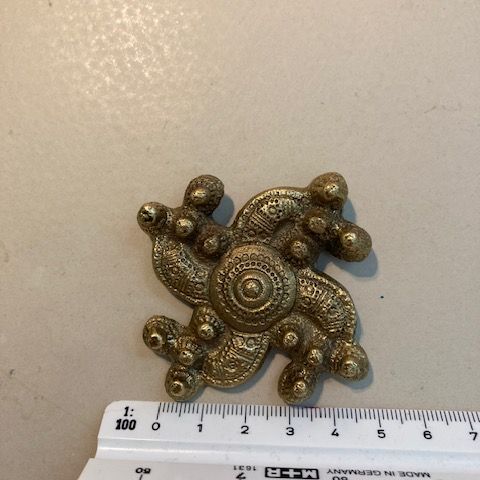 Rintakorun koko 5x4 cm ja korvakorujen läpimitta 1,2 cm. Hopea ja pienet helmet ja turkoosikivi. Rintakoru voi käyttää myös riipuksenä. Valmistettu 1997 (U8)