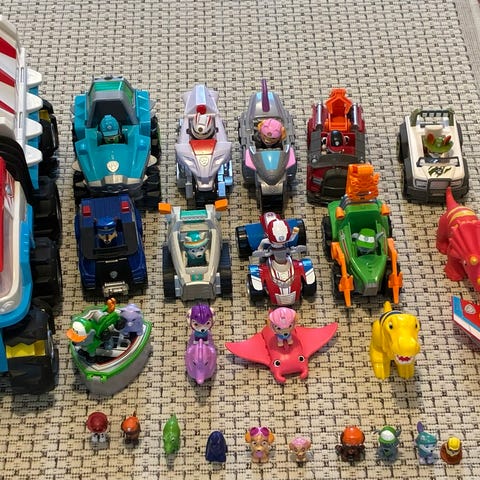 Erinomaisessa kunnossa olevia Ryhmä Hau ajoneuvoja ja hahmoja. Ylärivin ajoneuvot hahmoineen 15€/kpl. Alarivi 5€/kpl, alarivissä hahmot eivät lähde irti ajokeista.
