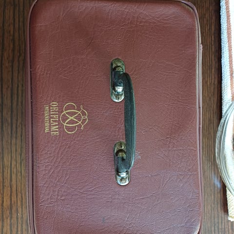 Hyväkuntoinen musta Oriflamen meikkilaukku.