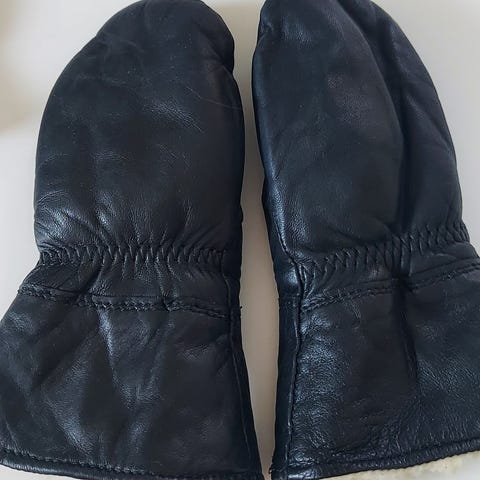 Lämpimät nahkakintaat, koko arvioisin noin 4-5vuotiaalle sopivat.