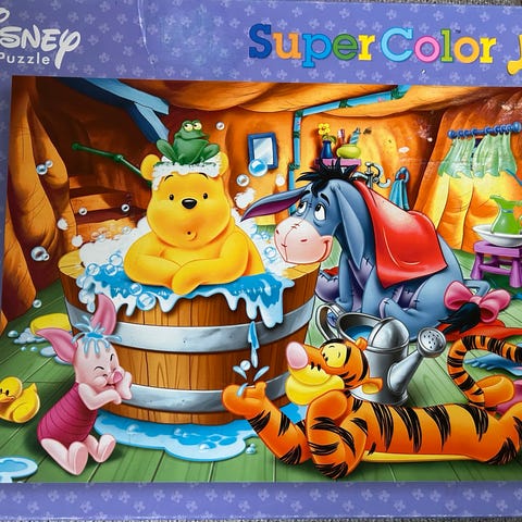 Disneyn värikäs palapeli, joka sisältää 104 palaa, jotka muodostavat kuvan Nalle Puhista, Natusta, Ihaasta, Tikrusta ja Möhköfantista. Palapeli on suunniteltu lapsille ja se kehittää motorisia taitoja ja hahmottamista.