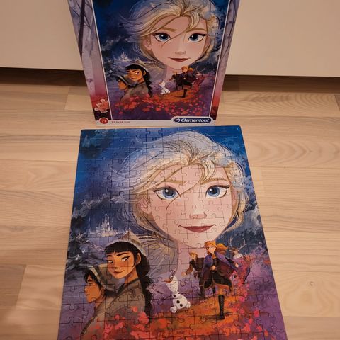 Clementoni Frozen palapeli, jossa on 104 palaa. Palapelin kuva-aiheena on Disneyn Frozen-hahmot, mukaan lukien Elsa, Anna ja Olaf. Sopii lapsille ja Frozen-faneille. Palat hyväkuntoiset, laatikossa sivussa taite.