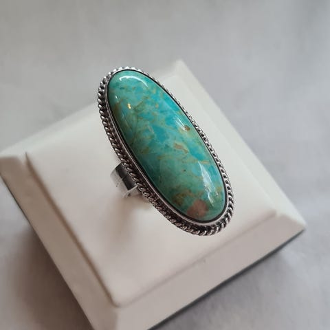 Sormuksen koko alkaen 18mm (Voi säädettävä koko). Kiven koko 14x22mm. Sormuksen ympärysmitta p8xl17xk26mm. Paino 10g. Kirjelähetys 3€.