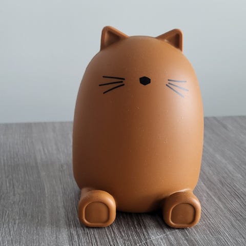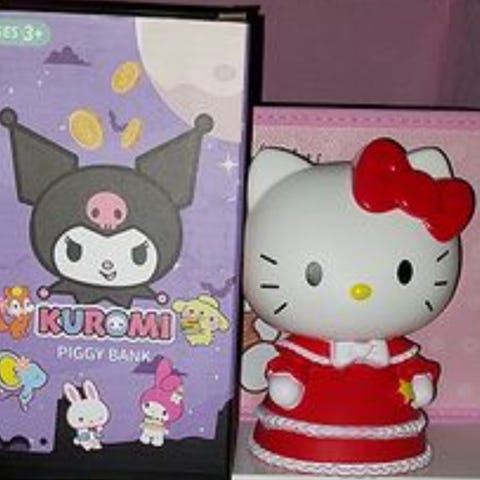 Kuvan mukaiset, pomme-pidou kissa ja Valas säästölipas.
