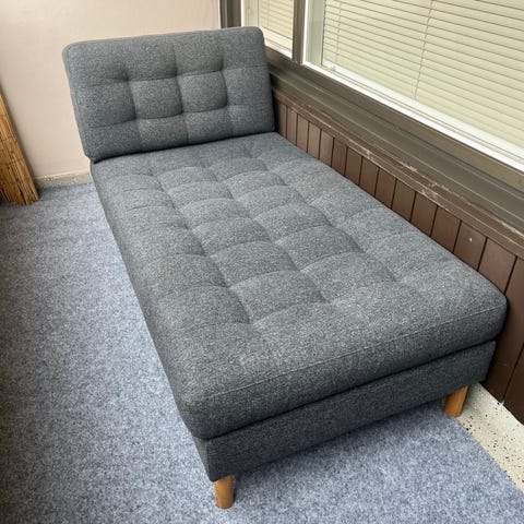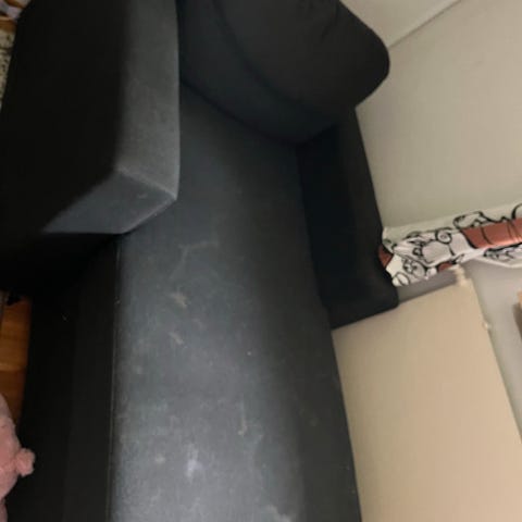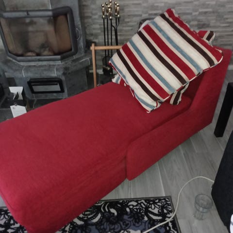 Pehmusteet ja runko moitteettomassa kunnossa. Päällisen pesu jää ostajalla. Tyynyosasta vetoketjun vedin irti mutta löytyy. Koira talous.