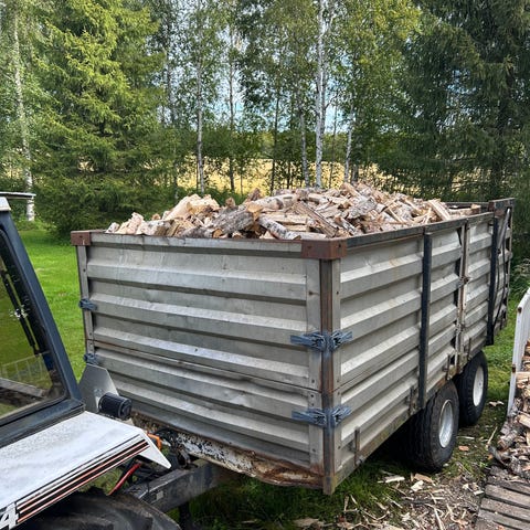 Myydään peräkärryllinen 1/26 valmistettua koivuklapia. Kärryssä 2 heittokuutiota.