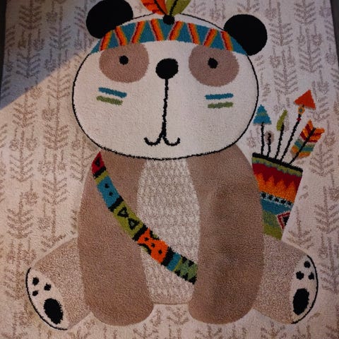 Nätti neutraalinen värinen lastenhuoneen autoratamatto. H&M Home. Koko 90x130cm. Pohjaväri luonnonvalkoinen. Konepestävä. Joitakin haaleita tahroja etupuolella, ja yksi isompi takapuolella, mutta yleisilme kuitenkin ihan siisti, voi ottaa ilman pesuakin käyttöön, pesu jää ostajalle.