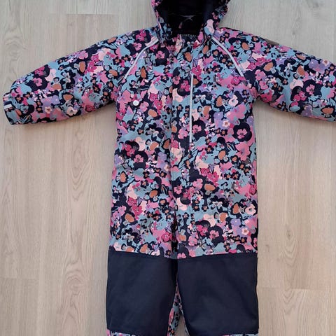 Hyvässä kunnossa toppahaalari, koko 98. Pepussa ja polvisa ehkä pieni pehmentymää, muuten ovat ehjät. Jalkalenksut vielä kestää, mutta kaipaa kohta varmasti vaihtamista. Katso tarkasti kuvia!