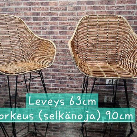 Myydään kahdeksan rottinkituolia. Olleet ruokapöydän ääressä, aloituskuvassa kuusi tuolia 180x95 cm pöydän ympärillä. Yhdessä tuolissa pientä kulumaa, näkyy kuvissa. Pehmusteet ei tule mukaan. Koiratalous Virroilla Kotalassa, vain nouto. HP. 150€/järkevä tarjous.