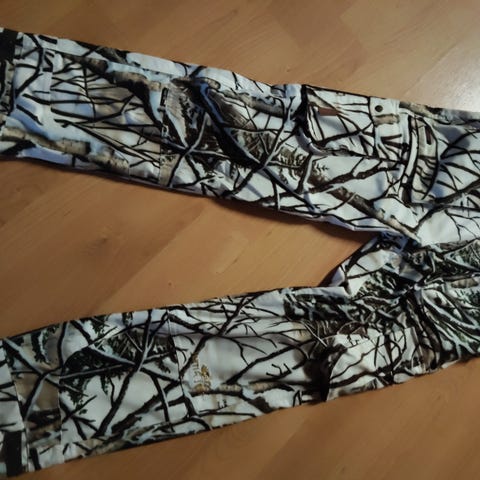 cramo kuvioinen kesän metsästyshousut ,olkaimien kanssa vähän käytetty koko xs voin postittaa .