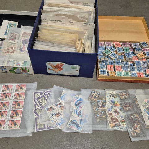 Kuvien laatikko miltei täynnä Suomi leikettä. Hyvä ja monipuolinen kasa uutta ja vanhaa. Vaakani mukaan laatikko painaa noin 3500g.