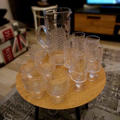 Myydään flora-sarjaan kuuluvat jalalliset jälkiruokakulhot/ lasit. Korkeus 9,5cm ja halkaisija 8cm. En muista koskaan olleen käytössä, mutta yhden lasin alareunassa riksu (kuva). Myydään kaikki kerralla ja nouto.