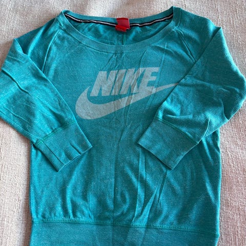 Kaunis turkoosi treenipaita kivalla yksityiskohdalla. Selän puolella kuminauha.
