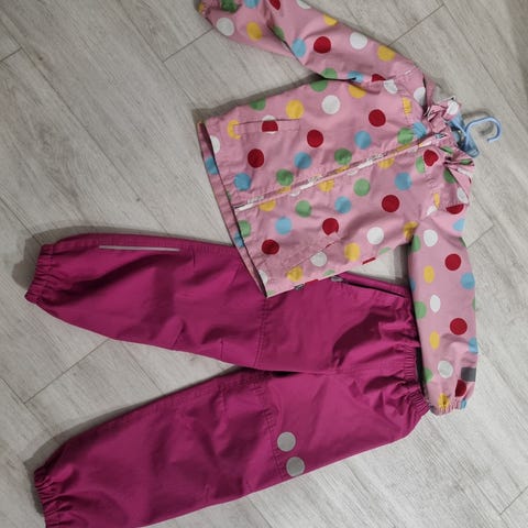 Lämmin takki, ihana kuosi, ei läpäise vettä. Käytönjälkiä, pienet reiät hihansuissa korjattu sekä takana purkautunut ommel korjattu. Ei näy vauhdissa. Vetoketju toimii.