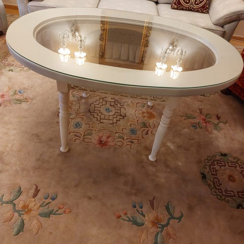 Suurin osa pienistä pöydistä tosi hyvässä kunnossa, joissain jotain pieniä halkeemia.