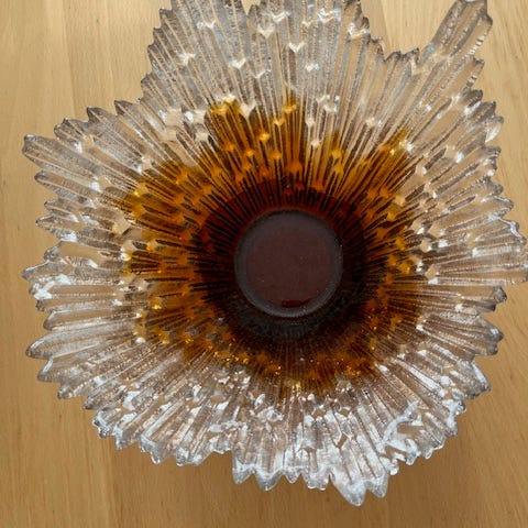 Tauno Wirkkalan v. 1972 Humppilan Lasitehtaalle suunnittelema Revontulet lasikulho kirkasta ja ruskeaa lasia lienee hänen tunnetuimmista esineistään. Ollut tuotannossa v. 1972-1987.