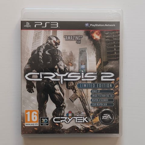 Crytek Crysis 2 Playstation 3 konsolille. Erittäin hyvässä kunnossa, naarmuton levy ja uudenveroinen ohjevihko mukana.