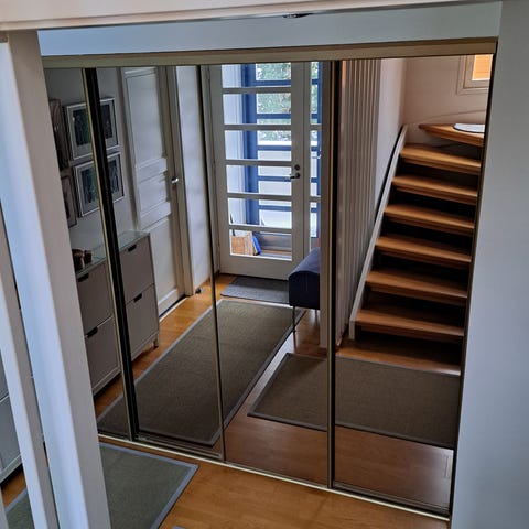 Upeat pyökkilasipariovet. Ovilevyt 58x205cm ja 56x205cm. Karmit 14,5x209cm.Kynnys 15x120cm. Messinkihelat