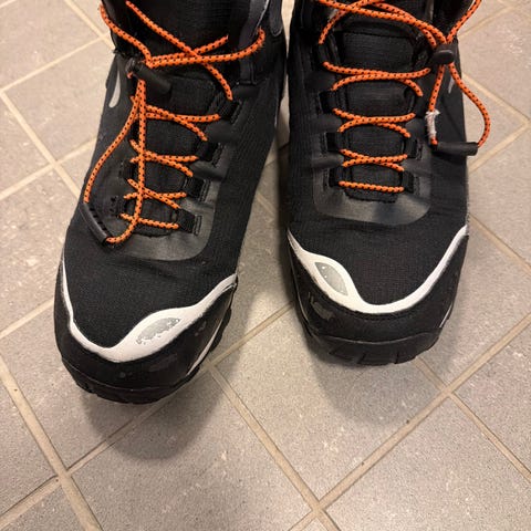 Tarrakiinnityksellä, vedenpitävät, ehjät, mustat, hieman kulumajälkiä.