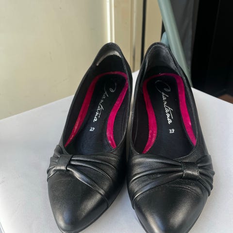 Chantana Korkokengät koko 39 musta nahka. Naisten kengät, joissa on musta nahkainen päällinen ja koristeelliset yksityiskohdat. Kengissä on korko ja ne sopivat erilaisiin tilaisuuksiin.