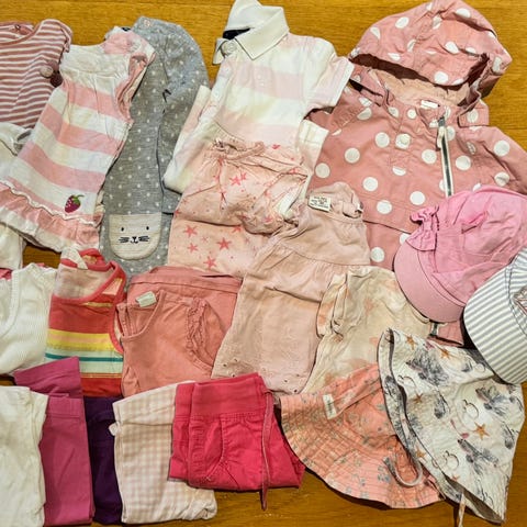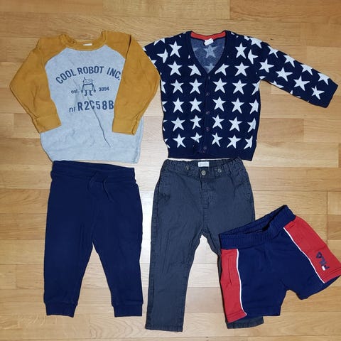 Siisti vaatepaketti koko 86-92. Hyväkuntoisia perusvaatteita. Pientä haalistumaa tms taisi olla osassa.