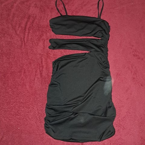 Melkein käyttämätön Tally Weijl mekko. Käytetty kerran kuvauksissa. Ei näkyviä jälkiä tai tahroja. Toppaukset, ja vyötäröllä musta osa joustavaa ja selkä puolella myös jousto-osa. Koko S.