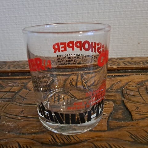 Ei ole ollut varsinaisessa käytössä. Tässä kun yrittää tutkailla tarkkaan niin ajan myötä kenties pientä pintajälkeä saanut ja logosta pari senttiä yläviistoon löytyy lyhyt - ihan parin millinmetrin mittainen - kynnellä tuntuva naarmu mikä ei kuvasta erotu. Nyt lisäksi jotain sormenjälkiä voinut myyntiinlaittaessa ottaa samoin kuin jotain huuhtelujäämää voi olla kun pesaisin enimmät pölyt pois. Joka tapauksessa hyväkuntoinen lasi, painatukset oikein hyvässä kunnossa ja valmistajan tarrakin on pysynyt paikoillaan.