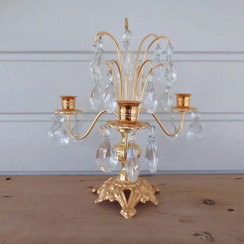 Kristallikynttilänjalka kullatuilla yksityiskohdilla. Nouto Länsinummesta.