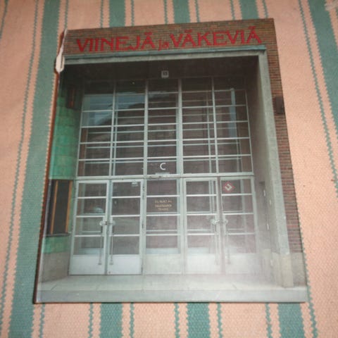Selailin vielä läpi ja yleisesti oikein hyväkuntoinen, joitain normaaleja selailunjälkiä huomasin. Kansipaperissa moitteita; normaalien pintanaarmujen/-hankaumien ja pienen hintalappujäämän ohella on reunaröpelöä/-repsoa ja selässä on raitoja kynänpainaumista tms (viimeisessä kuvassa osittain näkyy). Varsinaisissa kansissa jotain käyttökolhua. Paksuille kirjoille ominaista löystymää on myös, mutta suht napakka edelleen. Mukaan myös kirjan mukana tullut saatepaperi Valion maidontuottajalle.