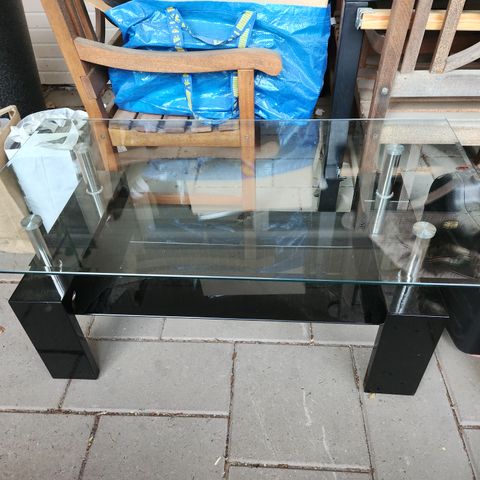 Maitolasinen sohvapöytä, jossa suorakulmainen lasikansi ja metalliset jalat. Pöytä soveltuu olohuoneeseen tai aulatilaan matalaksi laskutasoksi. Lasikansi on sileä ja helppo pitää puhtaana, ja metallijalat tuovat rakenteeseen tukevuutta.