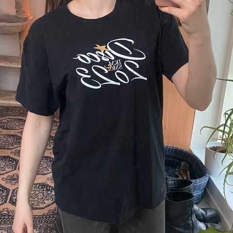 Paidan rinnassa on painatus jossa flamingoja ja teksti ’15th anniversary Qstock Oulu, Finland 28.-29.7.2017’. Selässä painatus ’pohjoista voimaa Oulunenergia.fi Temrex Clique’