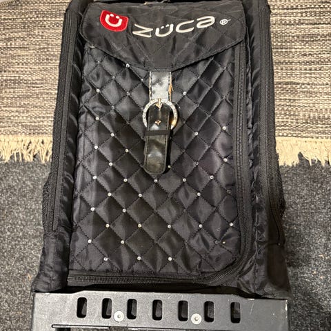 Zuca laukku seuraavalle luistelijalle. Pyörät vilkkuvat, kahva välillä jumittaa. Verkkotaskut korjattu. Takaseinän kangas on korjattu.