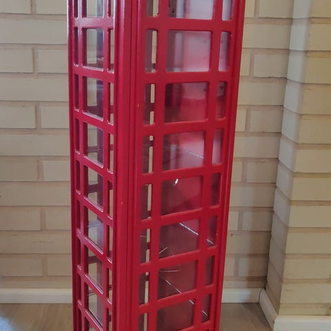 Kuvan mukainen punainen puhelinkoppi-kaappi pienille jutuille.