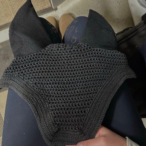 Myydään yhden kisaradan ajan käytetty full kokoinen tummansininen äänieristetty korvahuppu. Malli on Kentucky Wellington glitter soindless. Siniset välkkyväy timantit, glitterireuna sekä glitterilankaa mukana myös huppuosassa. Todella hieno!