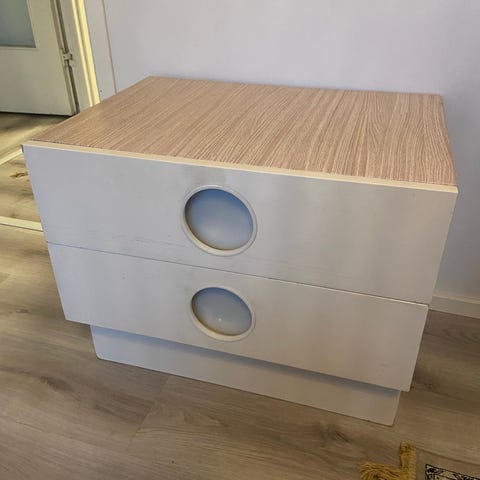Vanha Brion hoitopöytä, joka vauva-ajan jälkeen on toiminut perheessä lipastona.