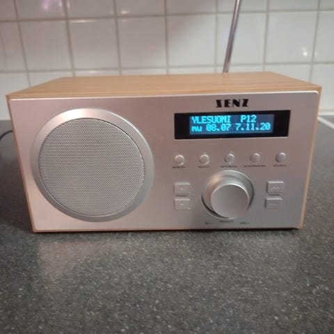 Käyttämätön, vielä pakkauksessa oleva työvalaisin kaiuttimilla.