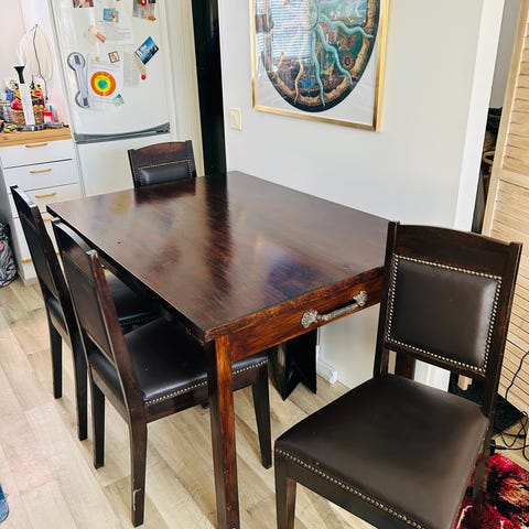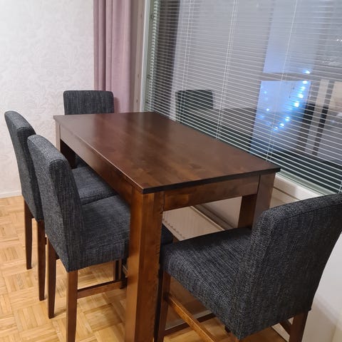 Myydään uniikki puinen ruokailuryhmä. Ostettu Pottery Barn liikkeitä Usasta. Hyvässä kunnossa. TARJOA!