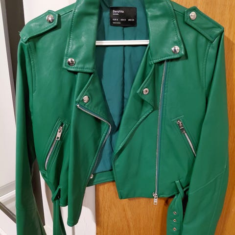 Blue faux leather jacket #fauxleather