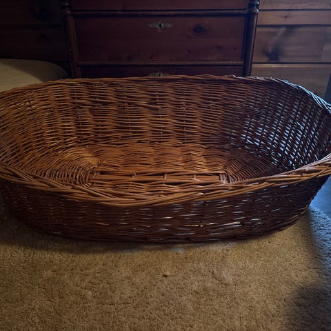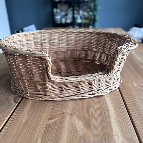 Hyväkuntoinen rottinkinen lemmikin peti. Kissoille tai koirille. Pehmikkeeksi sopii esim lampaantalja tai viltti