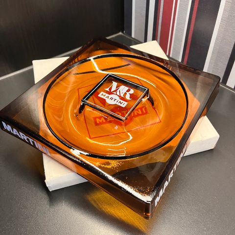 Vintage Martini -tuhkakuppi, keraaminen, harvinainen, neliönmuotoinen tuhka-astia