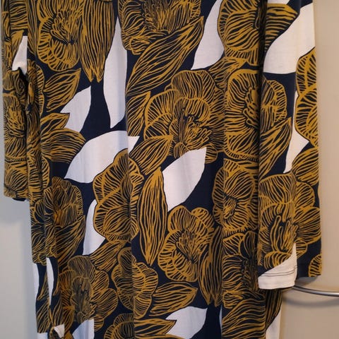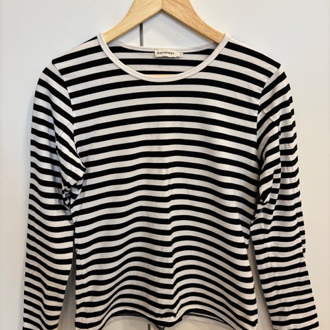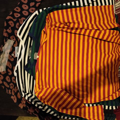 Hyväkuntoinen trikoopaita, väri vaalea beessi ja oranssinpunainen (ei siis perus puna-valkoinen).