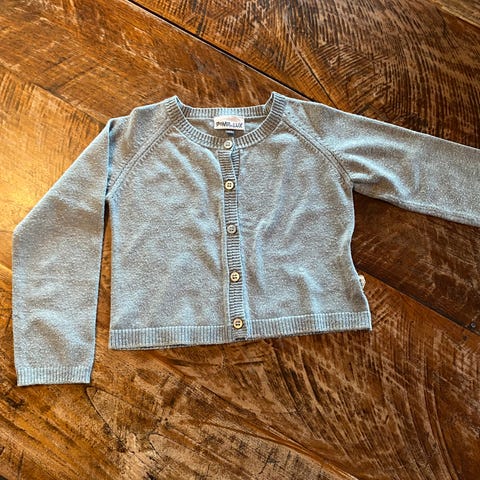 POMPdeLUXin siisti käytetty harmaa neulemekko koko 104cm. Pientä haitua hieman pinnassa.