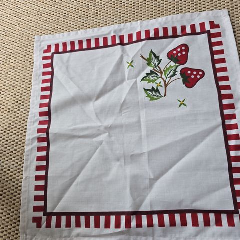 Käsin tehty liina, jossa on omena-aiheinen kuvio.