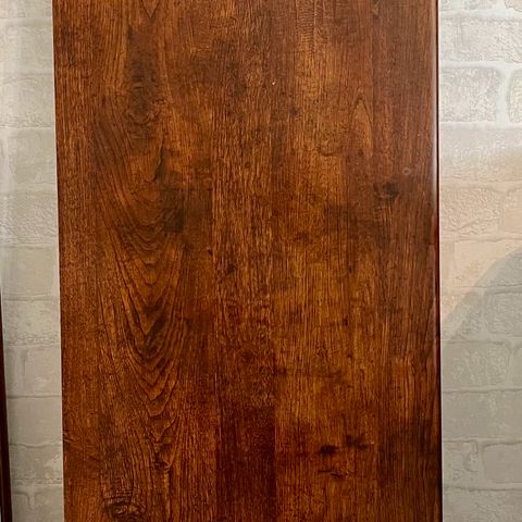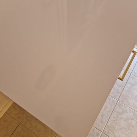 Musta laminaattitalo. Molemmissa päissä päätynauhoitukset. Tasossa pieni huomaamaton jälki pikaliimasta.