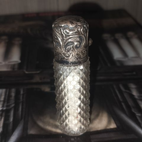 Antiikkinen iso vesi-, viinikarahvi, kirkastettu kristalli, hopeoitu. Albert Kohler, WMF, 1800-1900 luvun vaihde. Kork. 43cm, pohjan halk. 15cm, hyvässä kunnossa, hopea tummunut. Korkissa kruunu ja nokassa kasvot. Todella tyylikäs.