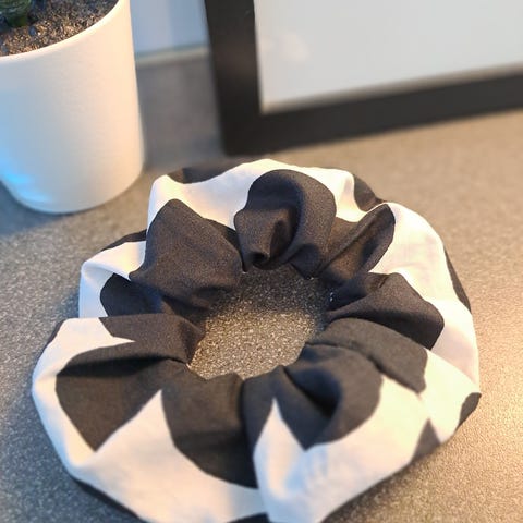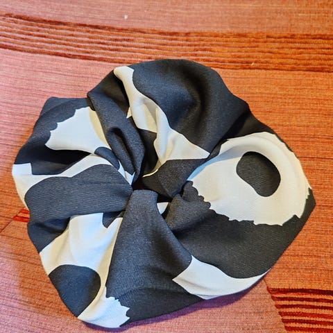 Marimekko hiusdonitsi puuvillaa, käytetty joitakin kertoja mutta mielestäni kaikin puolin oikein siisti. Marimekon tuotantoa (ei siis itsetehty).