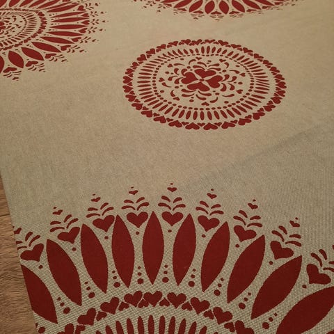 Myydään iso punakuvioinen pöytäliin, Luhta.Tukevaa puuvillaa. Koko 293*150 cm.
