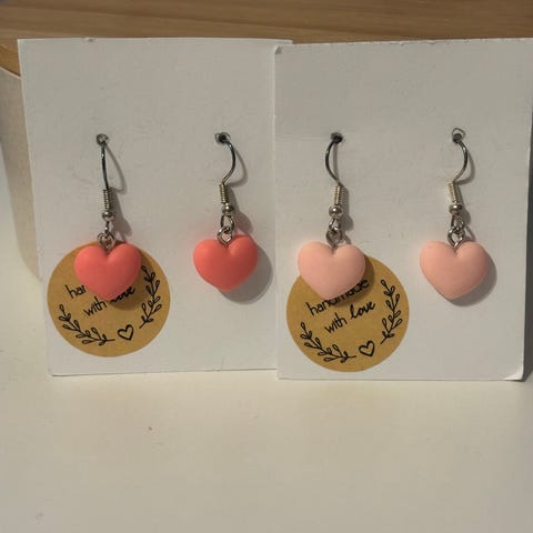 Myydään hyväkuntoisia, pieniä sydän korviksia. Koukut ei sisällä nikkeliä.