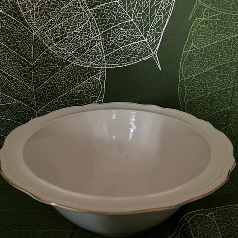 Arabia astiakulho, jossa sinivalkoinen kukkakuvio. Materiaali posliinia. Sopii keittiövälineeksi tai astiastoon. Arviolta n. 5 litraa.