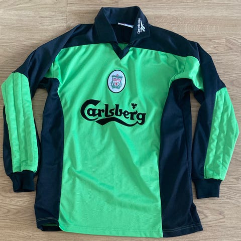 Myynnissä hieno Liverpoolin maalivahdinpaita kaudelta 96-97. Kunto todella hyvä. Koko 38/40 joka vastaa noin L-kokoa.